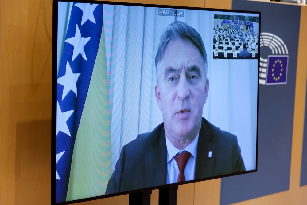 Predsjedavajući Predsjedništva BiH Željko Komšić je izlažući u EP, kazao da je problem i miješanje susjednim država u unutaršnja pitanja Bosne i Hercegovine.