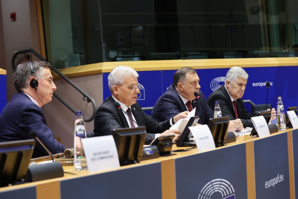 Članovi Predsjedništva Bosne i Hercegovine Šefik Džaferović i Milorad Dodik, te predsjedavajući Doma naroda PSBiH Dragan Čović, govorili su sinoć pred u Odboru za vanjske poslove Evropskog parlamenta.