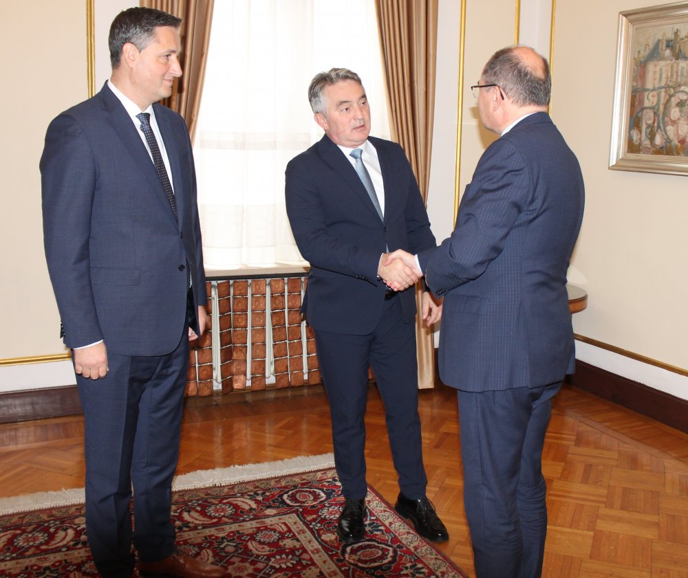 Članovi Predsjedništva Bosne i Hercegovine Željko Komšić i Denis Bećirović primili su danas visokog predstavnika za BiH Christiana Schmidta.