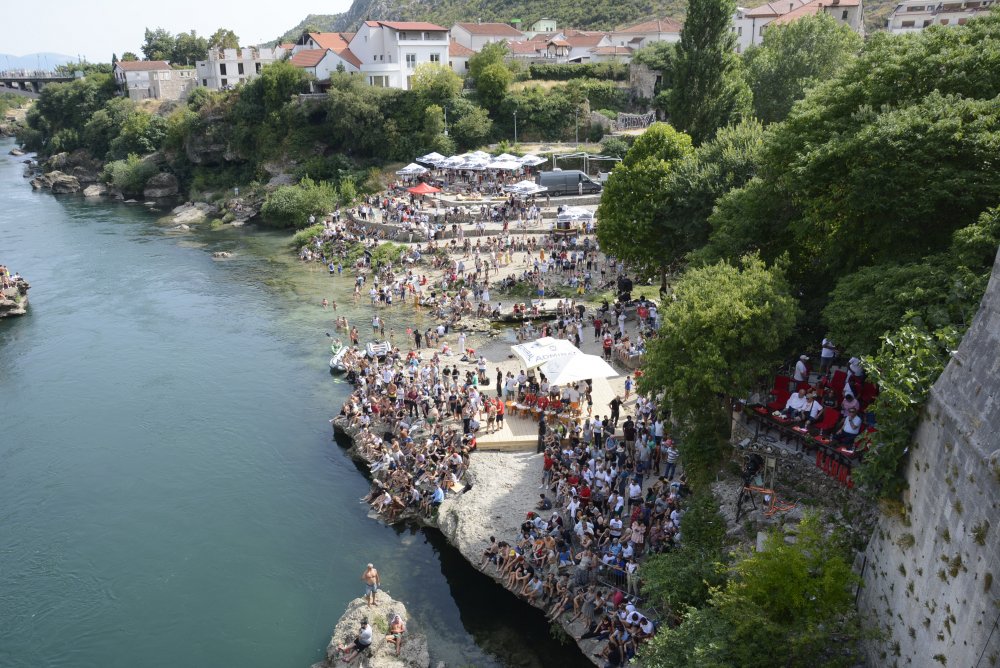 Na platou ispod Starog mosta prisutno je nekoliko stotina gledalaca.