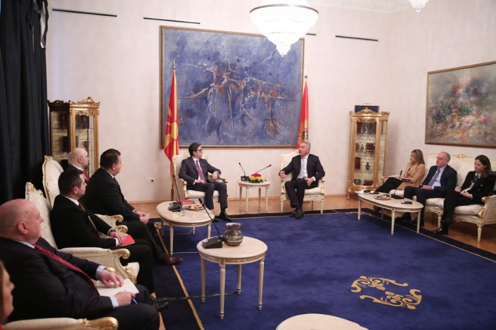 Pendarovski je dočekan uz najviše državne počasti, a nakon svečanog dijela dočeka, počeo je i sastanak dvojice predsjednika. Nakon sastanka, predsjednici Đukanović i Pendarovski će dati izjave za javnost.