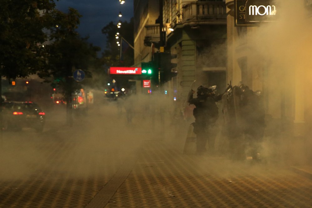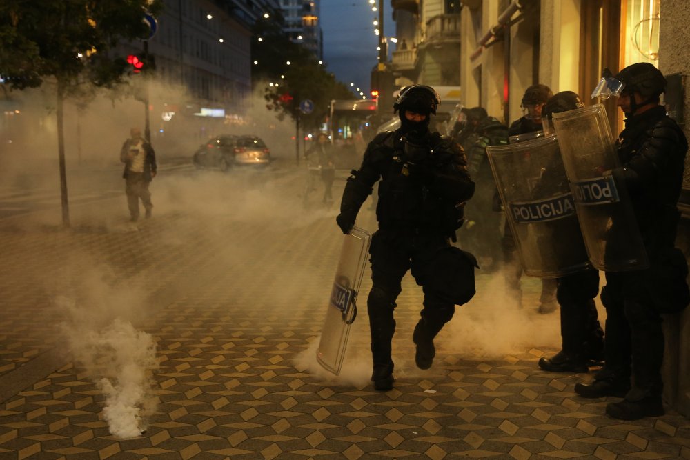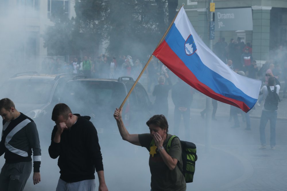 Policija u Ljubljani, glavnom gradu Slovenije, koristila je sinoć vodeni top i suzavac kako bi rastjerala demonstrante koji se protive vladinim mjerama uvedenim zbog sprečavanja širenja koronavirusa.