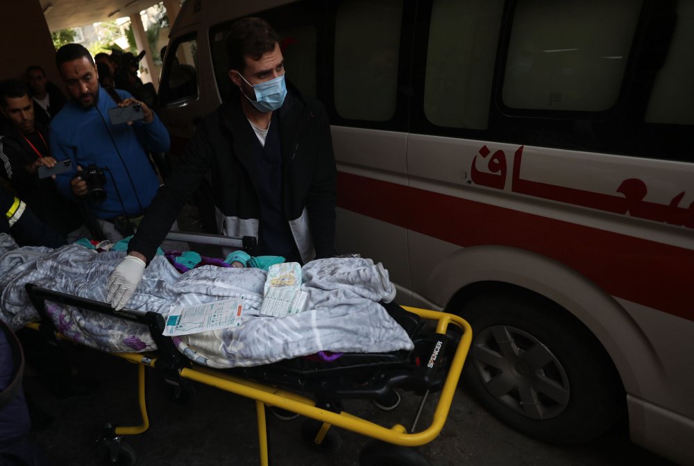 Crveni polumjesec Palestine objavio je da je 28 od 31 prijevremeno rođene bebe prebačene iz bolnice Al-Shifa na jug Gaze zbog izraelskih napada, transportovano kolima hitne pomoći prema graničnom prelazu Rafah.