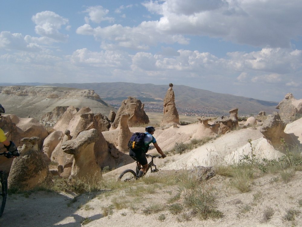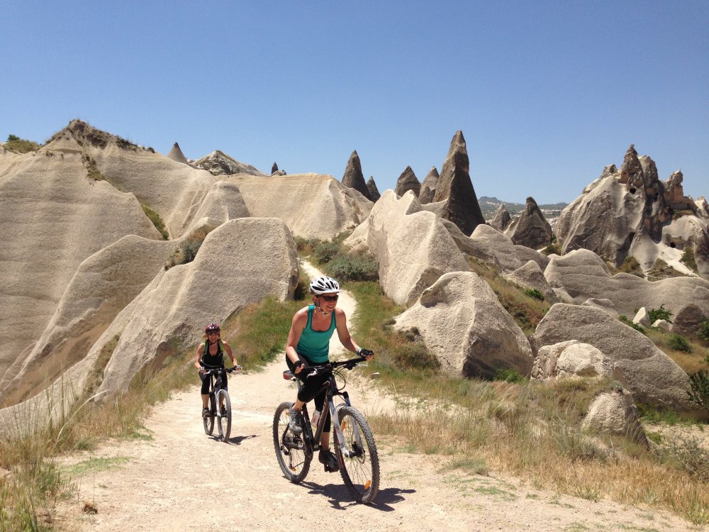 Jedna od najposebnijih destinacija u Turkiye je Kapadokija. Sasvim slučajno, ova regija je takođe odlična biciklistička destinacija, koja nudi sedam ruta posebno kreiranih za brdski biciklizam. Ruta od doline Güvercinlik do Muzeja na otvorenom Göreme počinje od dvorca Üçhisar – poznatog po nevjerovatnom panoramskom pogledu na Kapadokiju – i prati put doline Güvercinlik kroz Muzej na otvorenom Göreme, dolinu Meskendir i selo Çavuşin. Poznata po svojim planinarskim rutama okruženim bogatom vegetacijom, dolina Güvercinlik donosi novu perspektivu iskustvu pedalanja uz gugutanje golubova i slikovite pejzaže.