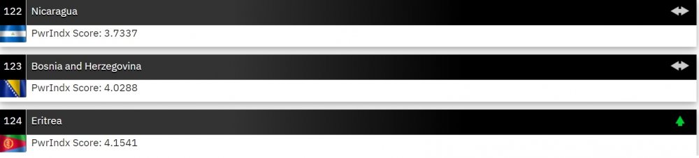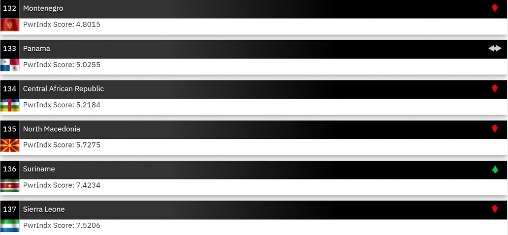 Albanija se nalazi na 115. mjestu dok je Bosna i Hercegovina na 123. mjestu. Crna Gora na 132. a Sjeverna Makedonija se nalazi tri pozicije iza Crne Gore i to na 135. poziciji po vojnoj moći. Kosovo je na 140. Mjestu od ukupno 142 zemlje.