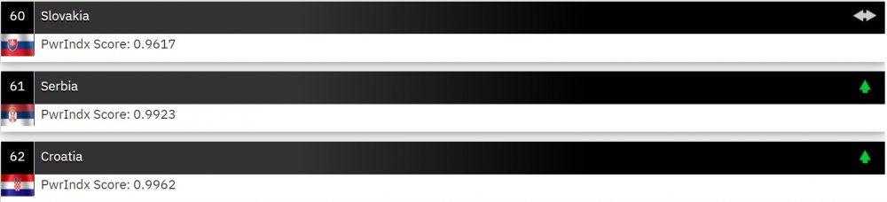 Odmah iza Srbije, na 62. Poziciji nalazi se Hrvatska, zatim Slovenija na 86. mjestu.